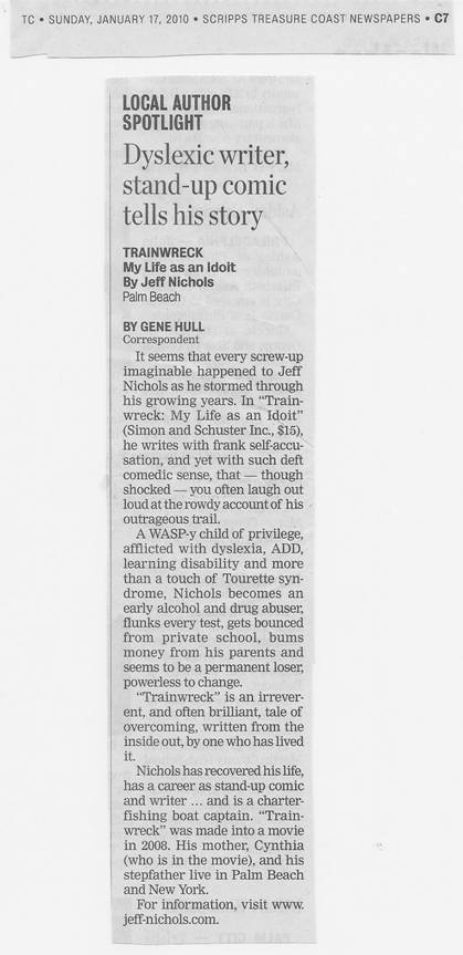 "Before you read TRAINWRECK My Life as an Idiot” you might need a good night’s sleep. Consider themes and ingredients of this memoir: dyslexia; ADD; alcoholism and its cousin, drug abuse; a crazy variety of jobs and occupations. You might say “Oh, here we go again. Another epic dysfunction.” No, stop right there. This is a romp of a book, a rowdy ride and yes, there’s a promise of that new American condition: redemption. The writing is leavened with a dazzling comic energy and you will want to cheer Jeff Nichols when he arrives at that sweet clearing in the woods."
